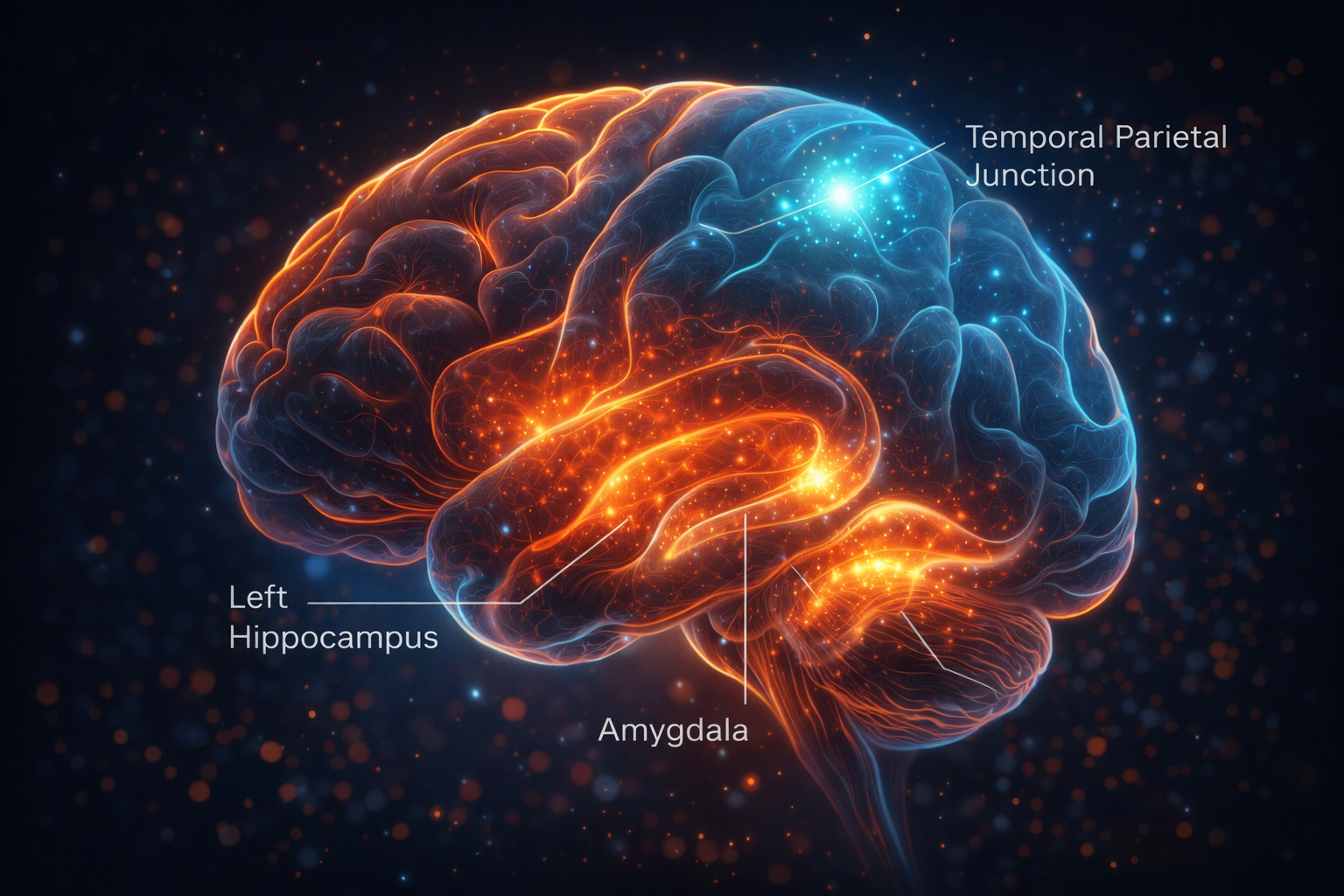 A decrease in gray matter in the amygdala, which is associated with the fight or flight part of our brain.